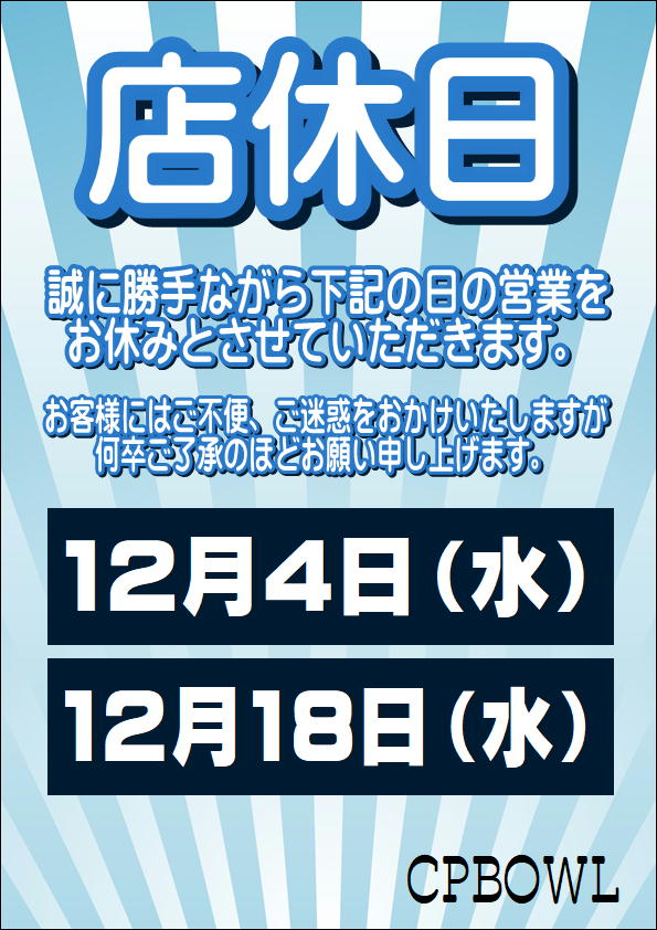 12月店休日のお知らせ 2024.11.25 お知らせ Post Share Hatena LINE RSS feedly Pin it note この記事のタイトルとURLをコピーする Post Share Hatena LINE RSS feedly Pin it note 11月のぼうらぼ! 前の記事 年末年始の営業時間のお知らせ 次の記事