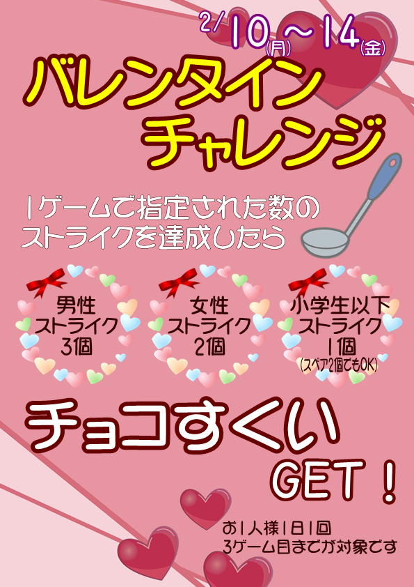 2/10(月)~2/14(金)バレンタインチャレンジ開催