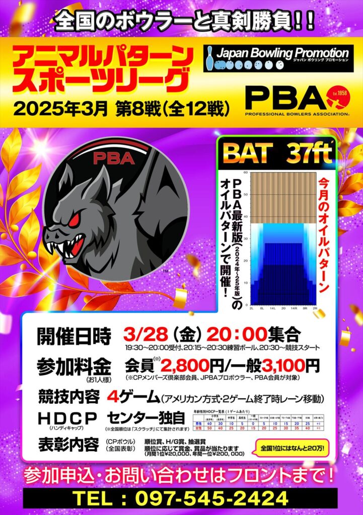 3月28日(金)開催 20:00集合 全国のボウラーと真剣勝負!!!