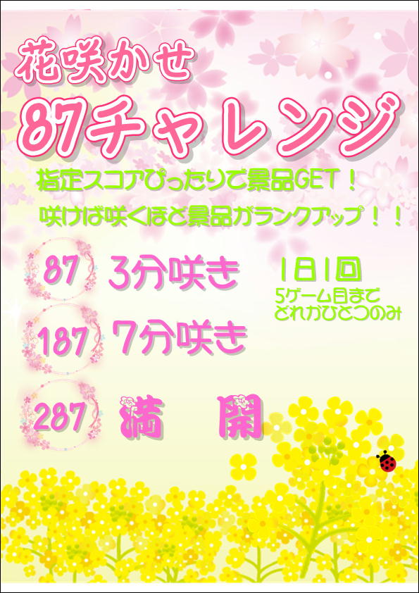 今月の週末は「花咲かせ🌸87チャレンジ」を開催!!
