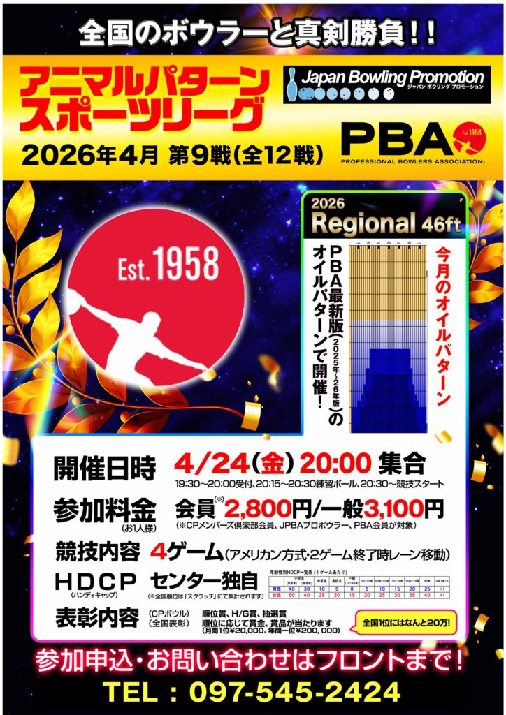 4月24日(金)開催 20:00集合 全国のボウラーと真剣勝負!!!