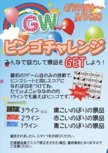 GWビンゴチャレンジ 2022.05.02 イベント Post Share Hatena LINE RSS feedly Pin it note この記事のタイトルとURLをコピーする GWイベントはビンゴチャレンジを開催します。豪華景品もゲットできるかも!ぜひCPボウルに遊びにきてね Post Share Hatena LINE RSS feedly Pin it note メンバーズ俱楽部限定練習会【ぼうらぼ】 前の記事 話題の地球グミをゲットしよう! 次の記事