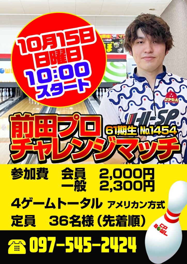 前田プロチャレンジマッチ10/15開催 2023.09.29 お知らせ イベント Post Share Hatena LINE RSS feedly Pin it note この記事のタイトルとURLをコピーする 2023.10.15(日)開催10:00スタート 前田プロとのチャレンジマッチに参加しませんか? 参加費:会員2000円 一般2,300円 4ゲームトータル アメリカン方式 ※定員36名(先着順) Post Share Hatena LINE RSS feedly Pin it note アニマルパターンスポーツリーグ第3弾 10/26開催 前の記事 ハロウィンイベント10月28日29日開催 次の記事