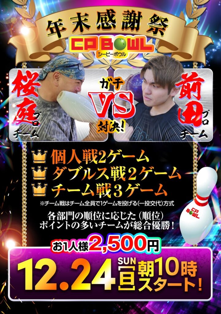 桜庭プロチームVS前田プロチームで大会を開催いたします。今年最後の師弟対決!是非ご参加下さい。予約受付中です。