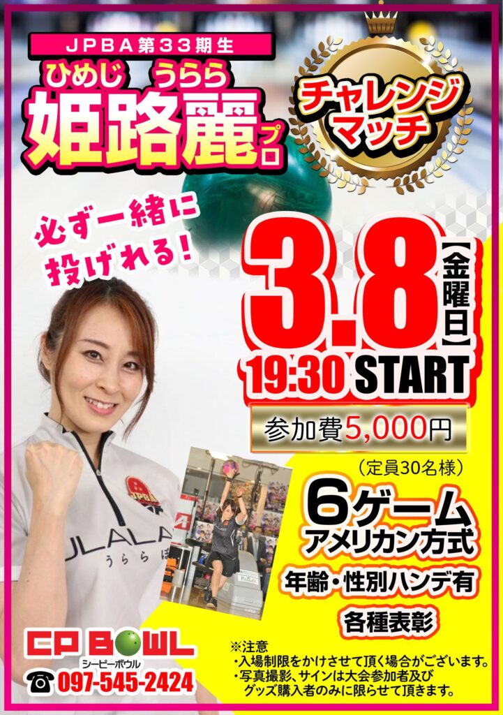 姫路麗(ひめじ うらら)プロとチャレンジマッチを開催します!